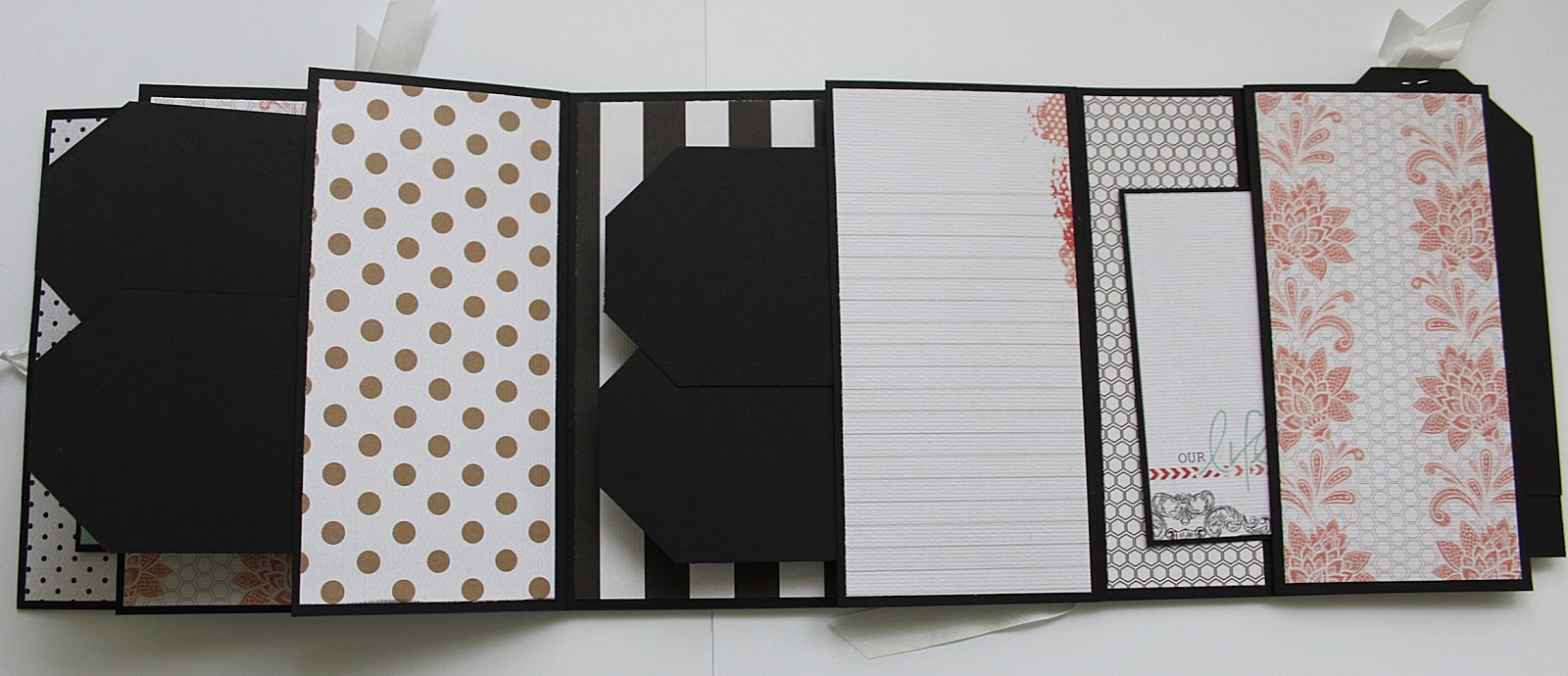 Ich wollte mal etwas anderes machen und habe deshalb ein Album gewerkelt, welches man von beiden Seiten öffnen kann...einige eingebaute Klappen und Taschen dazu....und man könnte es sogar offen hinstellen...wäre bestimmt ein netter Blickfang ;o)